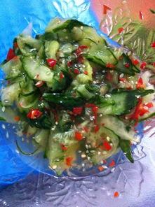 3. 黄瓜:将黄瓜切成条状,加入蒜末、醋、盐等调料,制成凉拌黄瓜。